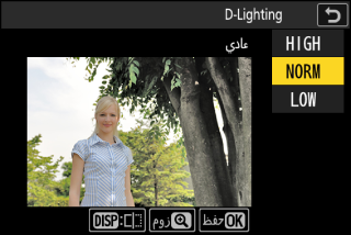 تعمل وظيفة D-Lighting على زيادة سطوع الظلال. هي مثالية للصور المظلمة أو ذات الإضاءة الخلفية.
