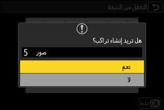 سيتم عرض مربع حوار تأكيدي؛ وعندئذٍ ظلل [] واضغط على J لحفظ التراكب وعرض الصورة الناتجة.