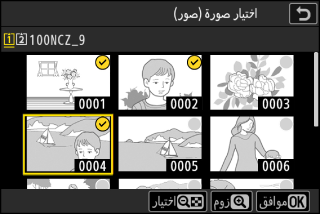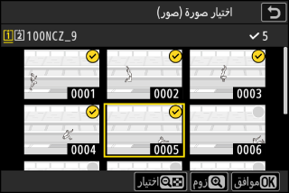 لتحديد الصورة المظللة، اضغط الزر W (Q). يتم تمييز الصور المختارة بعلامة (