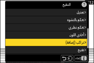 لن يتضمن التراكب سوى الصور التي تم إنشاؤها بتحديد الخيارات نفسها للإعداد [] > [] في قائمة تصوير الصور.