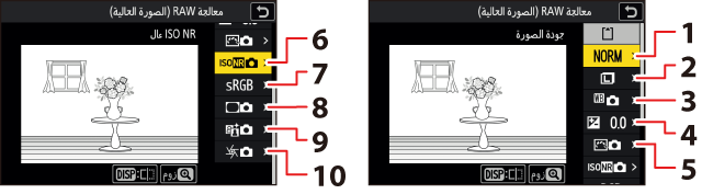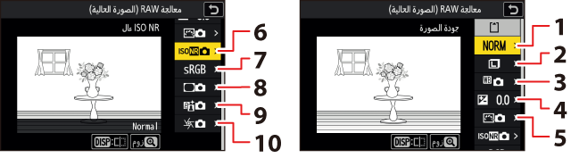 لا تتوفر معالجة RAW سوى لصور NEF (RAW) التي تم إنشاؤها باستخدام هذه الكاميرا فقط. ولا يمكن اختيار الصور ذات التنسيقات الأخرى وصور NEF (RAW) الفوتوغرافية التي تم التقاطها باستخدام كاميرات أخرى أو برنامج Camera Control Pro 2 أو برنامج NX Tether.
