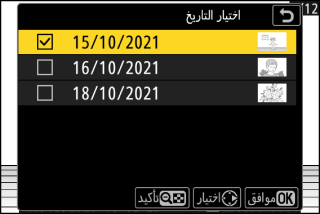 إنشاء نسخ JPEG لجميع صور NEF (RAW) الملتقطة في التواريخ المختارة.
