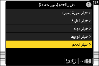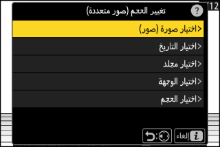 تغيير حجم الصور المحددة. ويمكن اختيار صور متعددة.