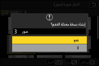 لاحظ أنه يجب استخدام الخيار [] مع النسخ التي تم إنشاؤها باستخدام الخيار [] ومع الصور الملتقطة باستخدام الخيار [] في قائمة تصوير الصور.