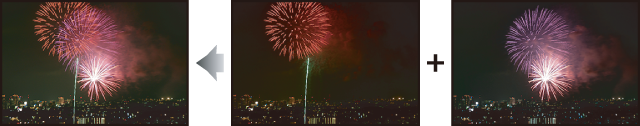 تقوم الكاميرا بفحص تتابع محدد من الصور لاكتشاف الأهداف المتحركة وإنشاء تراكب لها من أجل إنشاء صورة JPEG واحدة (دمج الحركة). |