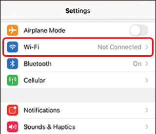 على أجهزة iOS، سيتم تشغيل تطبيق "Settings" (الإعدادات). انقر فوق [] (< الإعدادات) لفتح [] (الإعدادات)، ثم مرر لأعلى وانقر فوق [] (والتي ستجدها بين أعلى خيارات قائمة الإعدادات) لعرض إعدادات Wi-Fi.