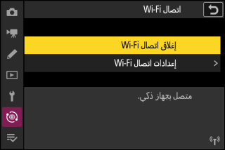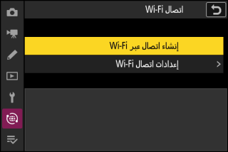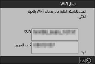 بعد إنشاء اتصال Wi-Fi بالكاميرا، سيعرض الجهاز الذكي خيارات وضع Wi-Fi.