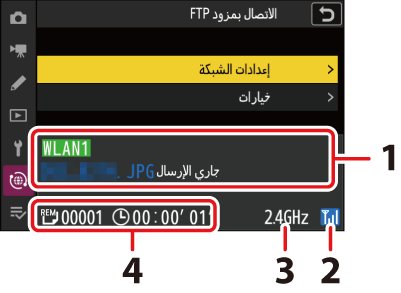 لقد تم الآن إنشاء اتصال لاسلكي بين الكاميرا ومزود FTP.