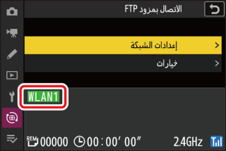 إن لم يُعرض اسم موجز البيانات باللون الأخضر، اتصل بالكاميرا عبر قائمة الشبكات اللاسلكية على مزود FTP.