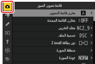 لعرض قائمة تصوير الصور، حدد التبويب C في قوائم الكاميرا.