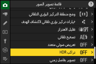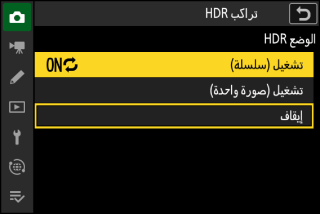 لالتقاط سلسلة من صور HDR فوتوغرافية. سيستمر تصوير HDR حتى تختار [] للإعداد [].