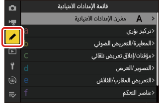 لعرض الإعدادات الاعتيادية، اختر التبويب A في قوائم الكاميرا.