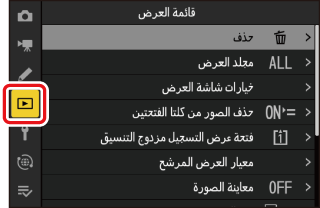 لعرض قائمة العرض، اختر علامة التبويب D (قائمة العرض) في قوائم الكاميرا.