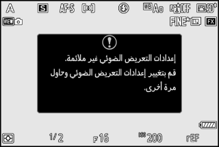 إذا كان الهدف المرجعي ساطعًا جدًا أو داكنًا جدًا، فقد يتعذر على الكاميرا التقاط البيانات المرجعية لإزالة الغبار المعتم في الصورة، وفي هذه الحالة ستظهر رسالة بذلك، وسوف تعود الكاميرا إلى الشاشة الموضحة في الخطوة 1. اختر هدفًا مرجعيًا آخرًا واضغط على زر تحرير الغالق مرة أخرى.