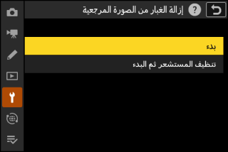لا يمكن استخدام البيانات المرجعية لإزالة البقع المعتمة التي تم تسجيلها قبل تنظيف مستشعر الصورة مع الصور التي تم التقاطها بعد تنظيف مستشعر الصورة. حدد [] فقط إذا لم تكُن تنوي استخدام البيانات المرجعية الخاصة بإزالة البقع المعتمة مع الصور الفوتوغرافية الحالية.