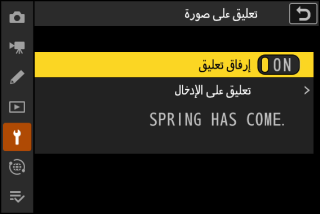 يضيف تعليق على الصور الفوتوغرافية الجديدة عند التقاطها. يمكن عرض التعليقات في علامة التبويب [] (معلومات) في برنامج NX Studio.