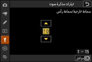 تُعرض مذكرات الصوت على سماعات الرأس (إذا كانت متصلة) أو على سماعة الكاميرا المدمجة.