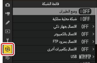 لعرض قائمة الشبكة، حدد التبويب F في قوائم الكاميرا.