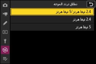 في حالة تحديد [] عند الاتصال عبر أجهزة توجيه لاسلكية تعمل على كلا النطاقين، ستتضمن القائمة معرفات الشبكة SSID الموجودة في النطاق أو النطاقات التي تكتشفها الكاميرا.