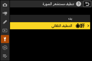 يمكن تنظيف مستشعر الصورة في أي وقت من خلال القوائم، أو يمكن إجراء التنظيف تلقائيًا عند إيقاف الكاميرا. إذا لم يؤدي تنظيف مستشعر الصورة إلى حل المشكلة، فاتصل بممثل خدمة مُعتمد من نيكون.