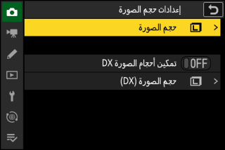 خيارات حجم الصورة الجديدة لصيغة DX فقط