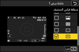 تمت إضافة [] إلى خيارات شاشة التصوير المتاحة عبر الإعداد الاعتيادي d18 [] والإعداد الاعتيادي d19 [].