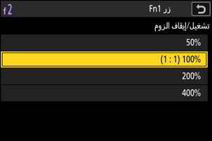 تمت إضافة خيار تكبير بنسبة [400%] إلى [تشغيل/إيقاف الزوم] المتوفر للإعدادين الاعتياديين f2 [عناصر التحكم الاعتيادية (التصوير)] وg2 [عناصر التحكم الاعتيادية]. لقد قمنا أيضًا بتغيير أسماء الخيارات الأخرى إلى: