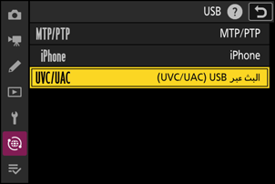 لقد أضفنا عنصر [البث عبر USB (UVC/UAC)] إلى [