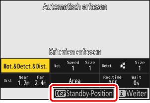 Die Kamera setzt die Fokusposition zurück, wenn sie in den Standby für die automatische Aufnahme geht. Die wiederhergestellte Fokusposition hängt von der für [Kriterien erfassen] gewählten Option ab.