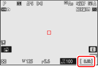 La pantalla de disparo y el panel de control muestran el número de fotografías que se pueden tomar con los ajustes actuales.