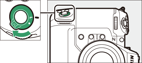 Gire el bloqueo del disparador para disparo vertical hacia L para evitar accionar accidentalmente estos controles cuando la cámara esté en orientación de paisaje (“horizontal”).