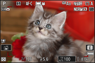 Si se detecta un perro, gato o pájaro al seleccionar [], el punto de enfoque aparecerá sobre el rostro del animal en cuestión (AF de detección de animales). Si la cámara detecta los ojos del sujeto, el punto de enfoque aparecerá en uno de sus ojos. Si la cámara no puede detectar ni el rostro ni los ojos, mostrará un punto de enfoque sobre el animal detectado.
