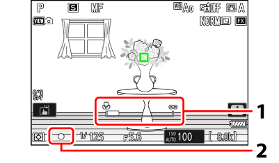 Al usar el enfoque manual con sujetos no aptos para autofoco, tenga en cuenta que el indicador de enfoque (I) podría aparecer cuando el sujeto no está enfocado. Acerque el zoom en la vista a través del objetivo y compruebe el enfoque. Si la cámara tiene problemas para enfocar, se recomienda el uso de un trípode.