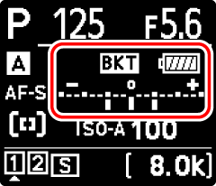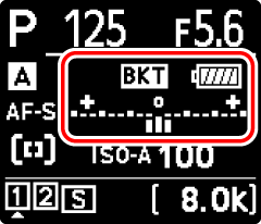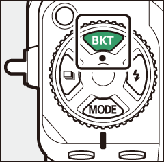 Si seleccionó 5 disparos, puede elegir entre las secuencias de horquillado [] y [] manteniendo pulsado el botón BKT y girando el dial secundario.