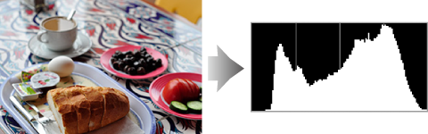Los histogramas de la cámara pueden diferir de aquellos visualizados en aplicaciones de procesamiento de imágenes. Úselos como una guía para la distribución de tonos real.
