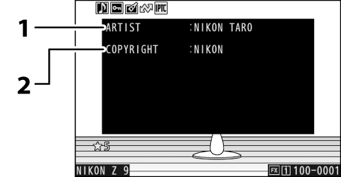 La información de derechos de autor solamente se muestra si se grabó usando el elemento [] en el menú de configuración en el momento en el que se capturó la imagen.
