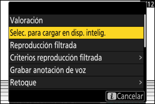 Los elementos del menú i utilizados para seleccionar imágenes para la carga varían según el tipo de dispositivo conectado: