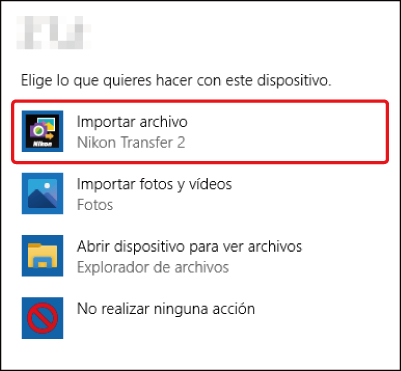 Si aparece un mensaje solicitándole elegir un programa, seleccione Nikon Transfer 2.