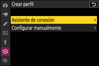 Cuando se establezca una conexión, el nombre del perfil se mostrará en verde en el menú [] de la cámara.
