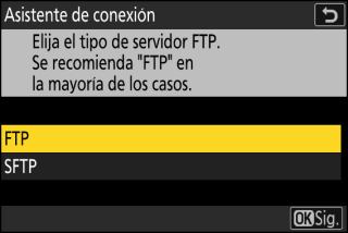 Marque [] o [] (FTP seguro) y pulse J para mostrar un cuadro de diálogo en el que pueda seleccionar un método de inicio de sesión.