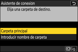 Seleccione esta opción para elegir la carpeta principal del servidor como destino para las imágenes cargadas desde la cámara. Se mostrará un cuadro de diálogo “configuración completada” si la operación se realiza correctamente.