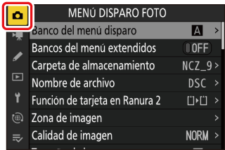Para visualizar el menú disparo foto, seleccione la ficha C en los menús de la cámara.