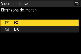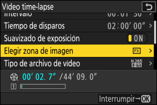 Seleccione la zona de imagen para los vídeos time-lapse entre [] y []. |