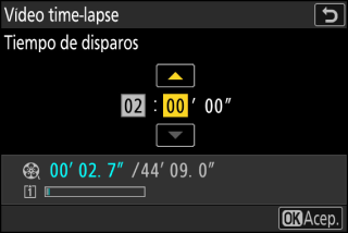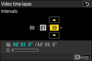 Seleccione un intervalo (en minutos y segundos) y pulse J.