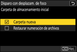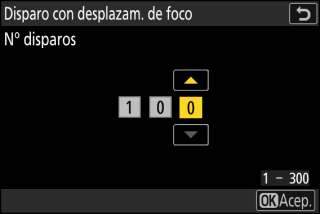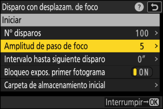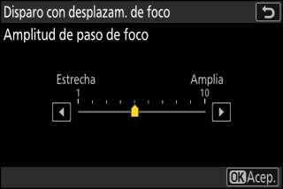Seleccione cuánto cambiará la distancia de enfoque con cada disparo.