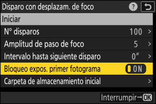 Active o desactive el bloqueo de la exposición del primer fotograma.