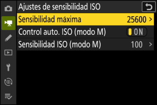 []: Active el control automático de la sensibilidad ISO en el modo M.