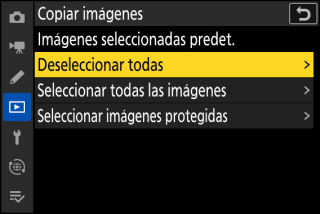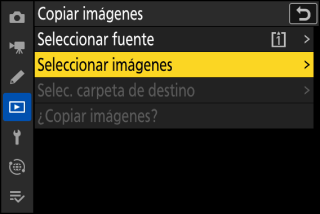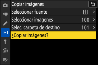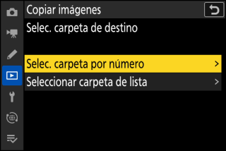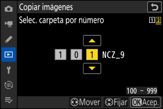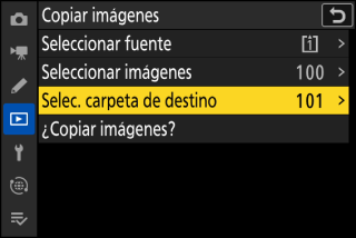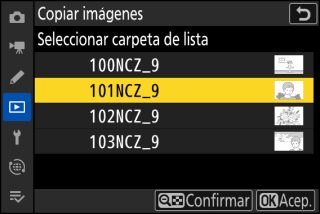 Marque la carpeta que contenga las imágenes que se van a copiar y pulse 2 para visualizar el menú [].
