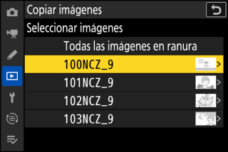Seleccione la tarjeta que contenga las imágenes a copiar.