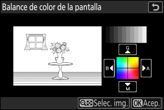 El balance de color de la pantalla es aplicable solo a los menús, la reproducción y la pantalla de disparo; las fotos y los vídeos capturados con la cámara no se verán afectados.